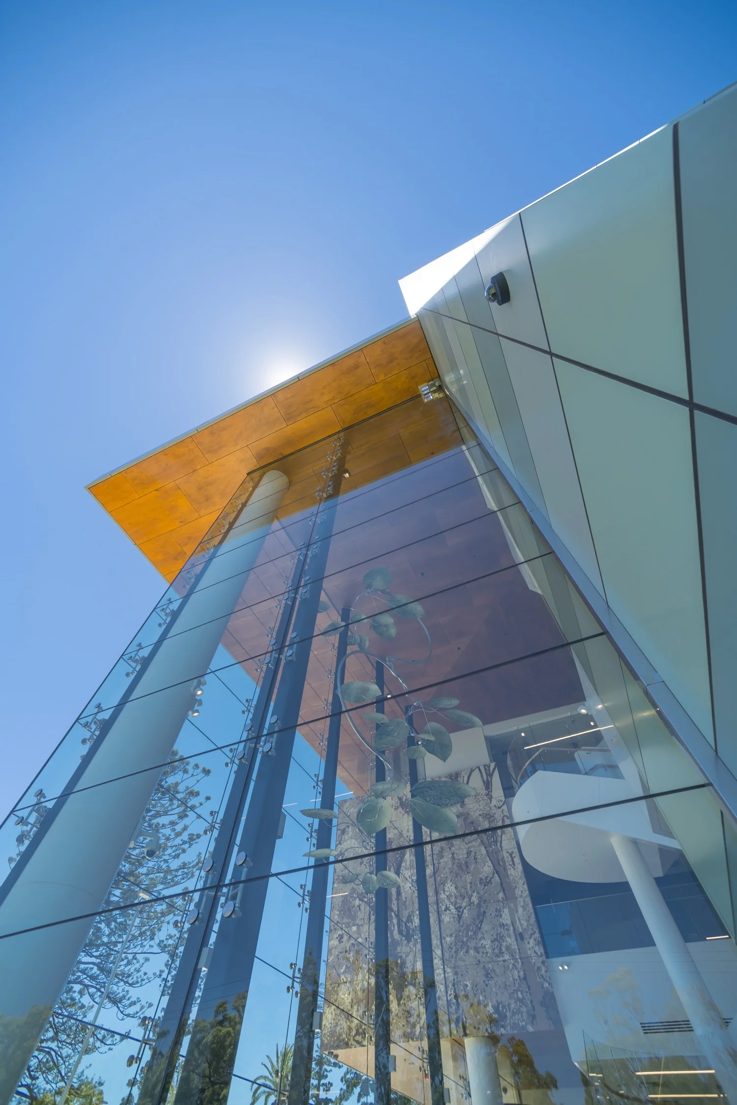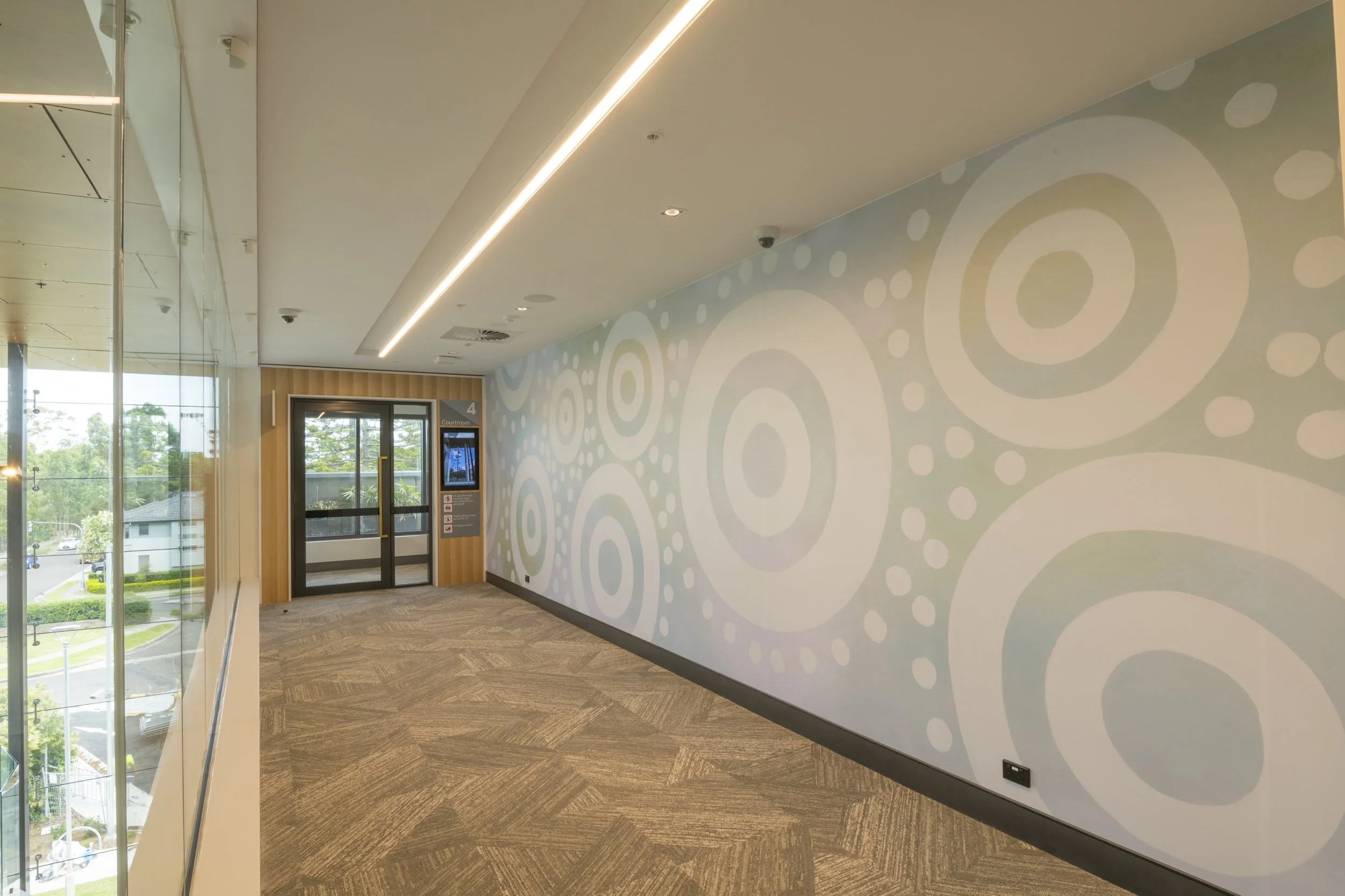 The design concept acknowledges the shared clan connections along the river and the estuarine environment of the area which encompasses the Forensic Medicine and Coroner's Court with the placement of the mangroves along the river, the connecting camp sites and the white egrets flying overhead.'